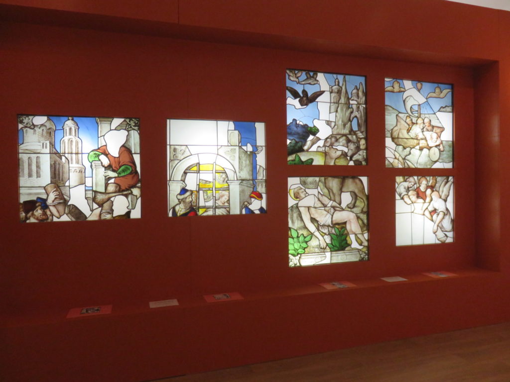 Présentés dans une verrière de l’église Saint Germain jusqu’à la fin du XIXe siècle, les panneaux de vitraux de Jean Lecuyer ont été endommagés lors de la chute du clocher en 1896. Après restauration, ils sont déposés au musée municipal de La Châtre au début des années 1920. Leur état de conservation ne permettant plus de les présenter au public, ils ont été stockés en réserves pendant plusieurs années. En 2020, près de 100 ans plus tard et après une restauration d’envergure menée en 2019, nous vous proposons de découvrir le travail exceptionnel attribué à Jean Lécuyer.